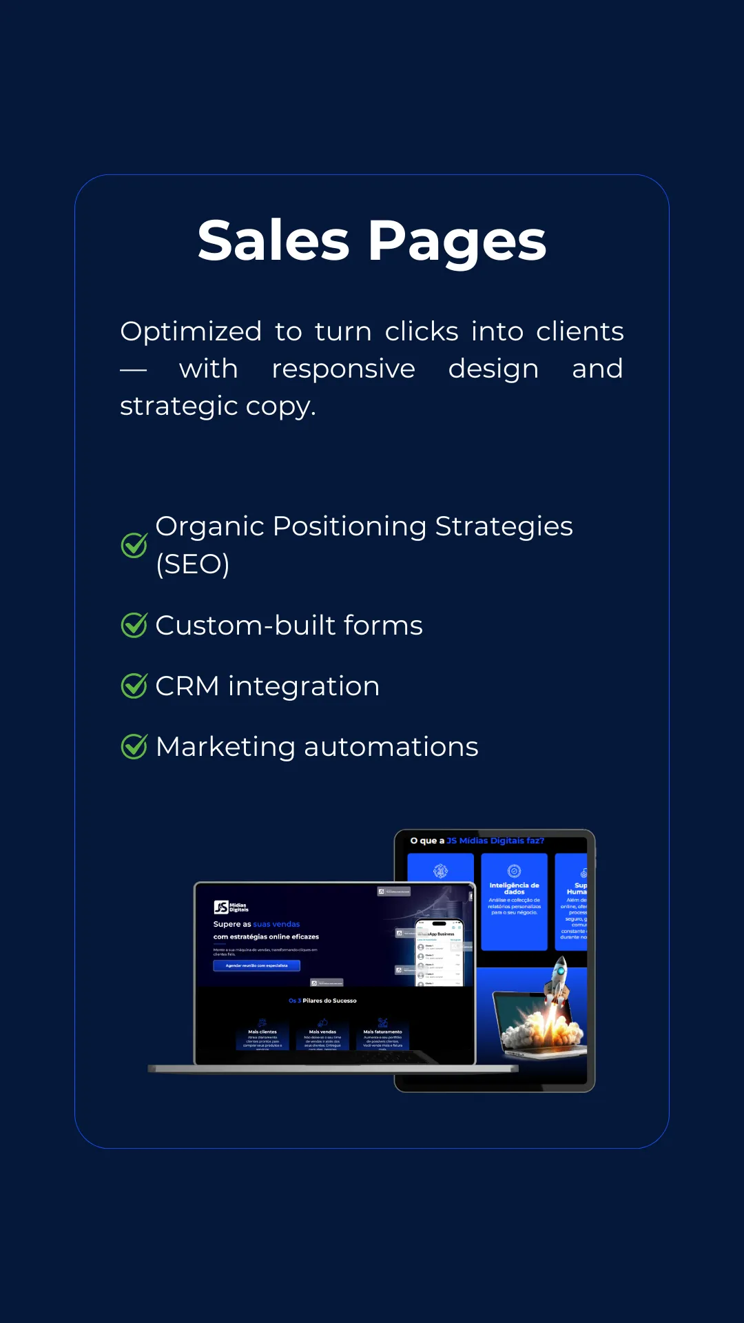 We work with businesses that invest at least $1,000/month in paid ads. This allows us to build strategies with real potential. That said, we always recommend scaling your investment as your results grow, to maximize your returns.
